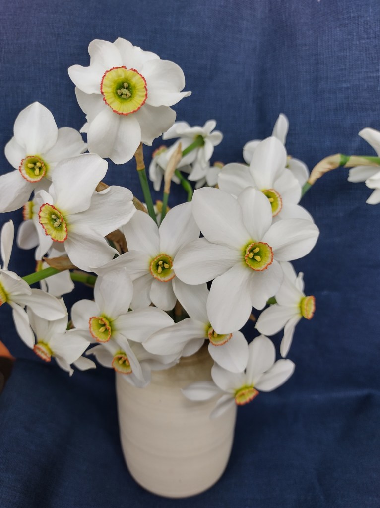 N. flore pleno albo – baltas pilnaviduris narcizas, pilnaviduris poetinis narcizas.