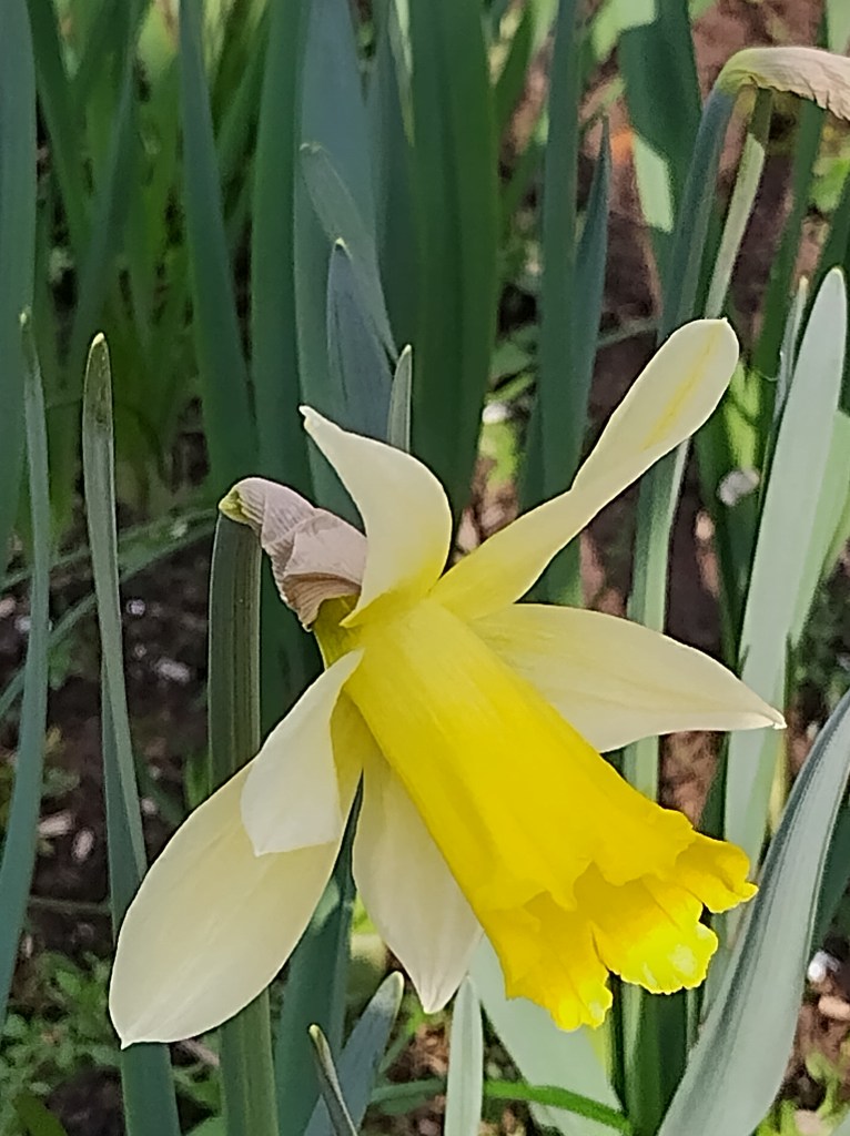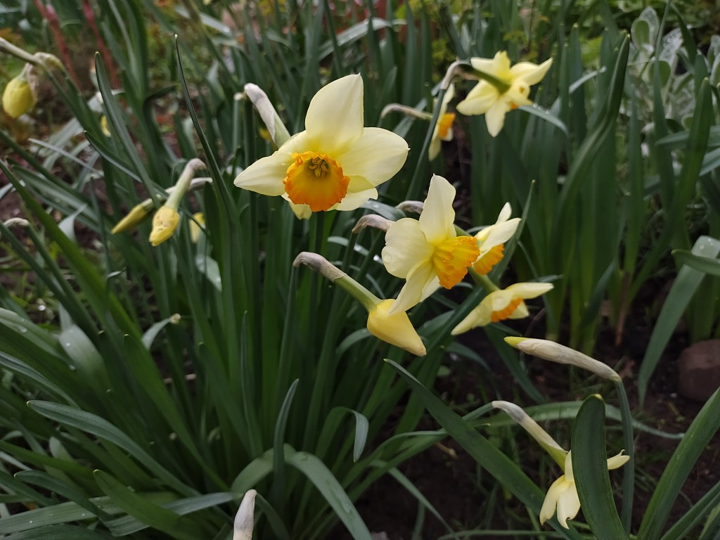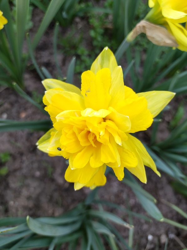N. pseudonarcissus var. flore pleno (pilnaviduris) (augalas labai brokuotas. Auga soduose).