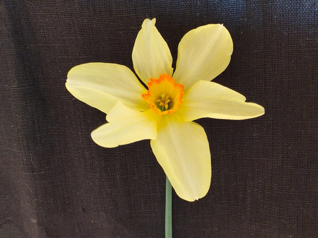 3. ‘Barri Conspicuus’ – geltoni žiedai su raudona akute. Nuotraukoje: ‘Barrii Conspicuus’ arba ‘Brilliancy’