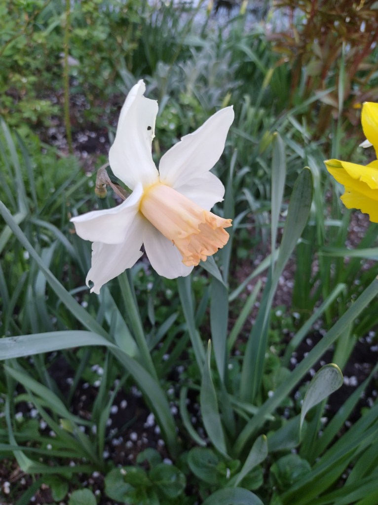 7. ‘Orange phoenix’ – baltais žiedais. (gali būti leidybos klaida. Šio narcizo spalva geltona).