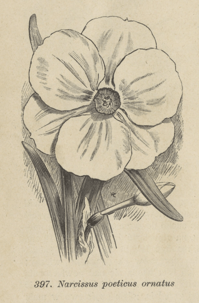 Poetinis narcizas (Narcissus poeticus) ir jo formos
