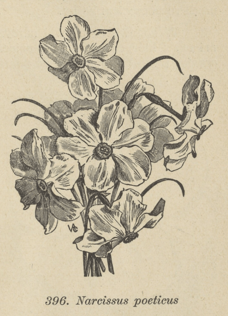 165. N. poeticus L. – “Narcyz bialy” – “Narcyz baltasis nou žmonių wadynama Lelyje baltoji” (radimo vieta nenurodyta);