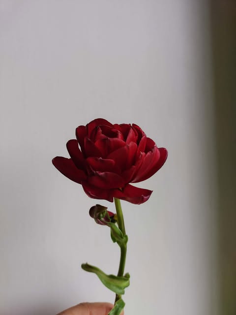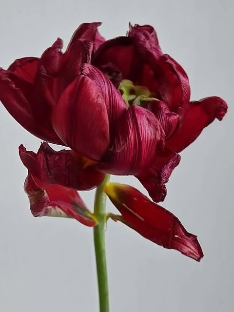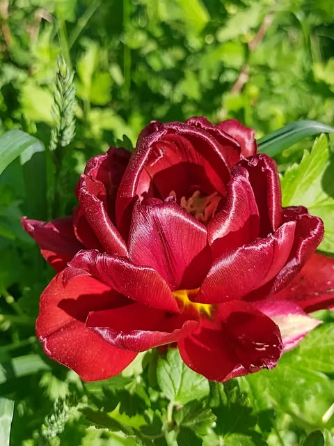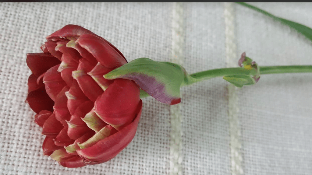 Vėlyva raudona pilnavidurė tulpė. Neaukšta. Labai kvapni. Ant žiedynstiebio arčiau žiedo yra mažas lapelis (prielapis).