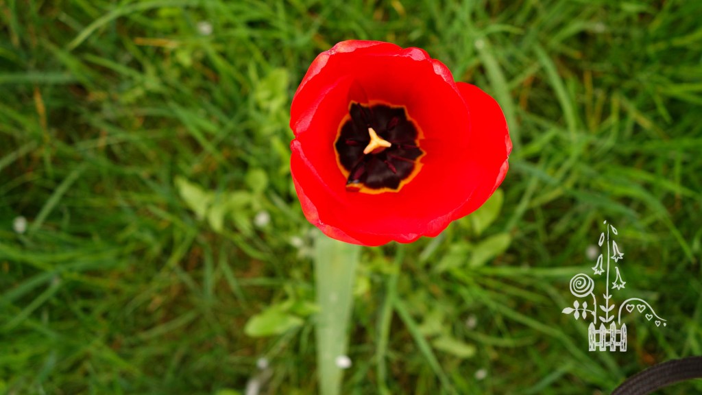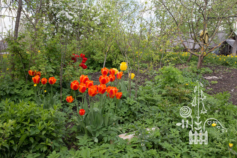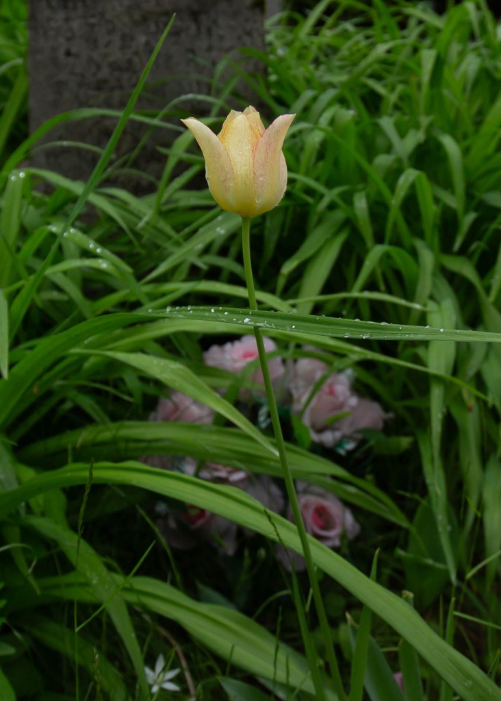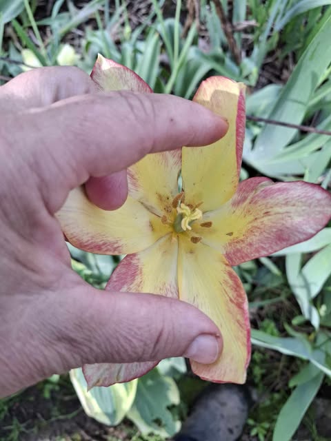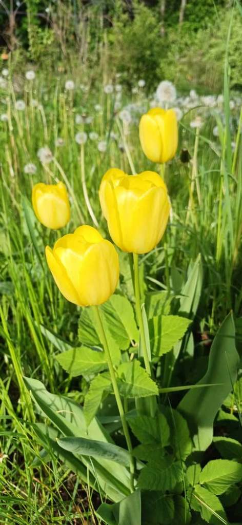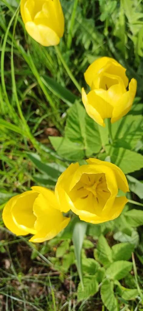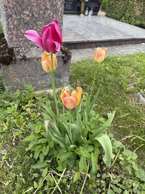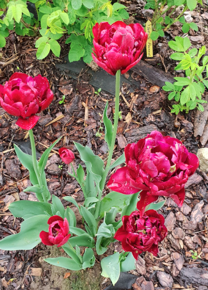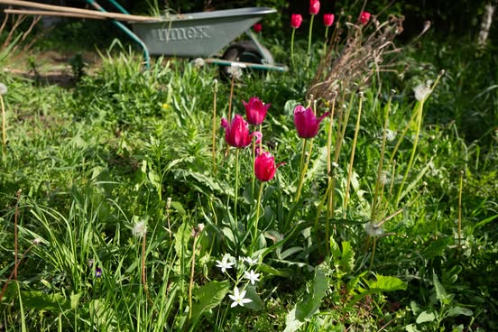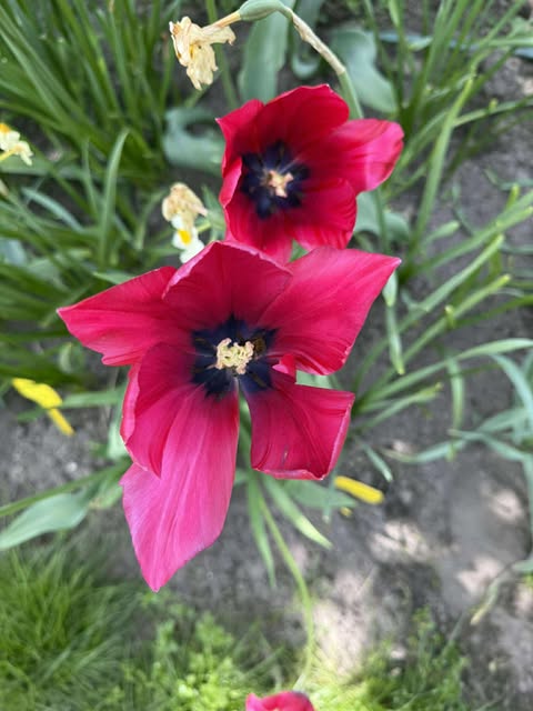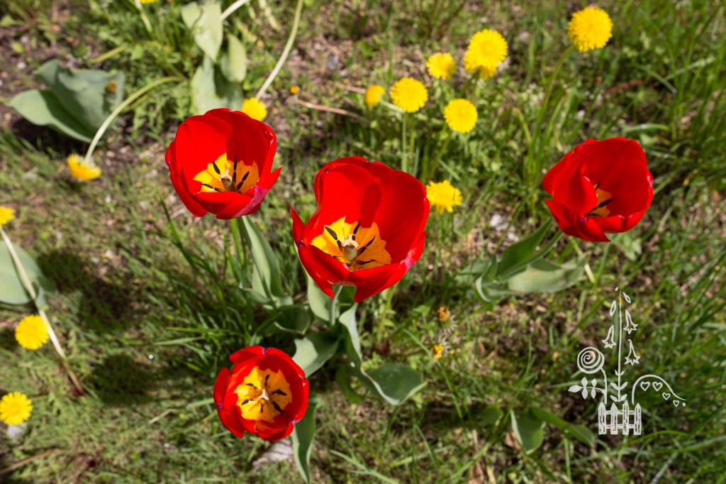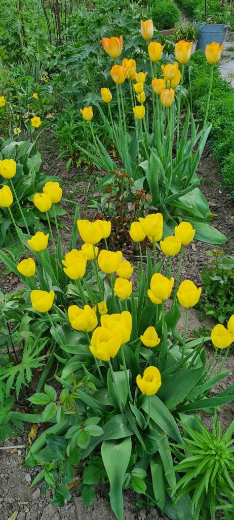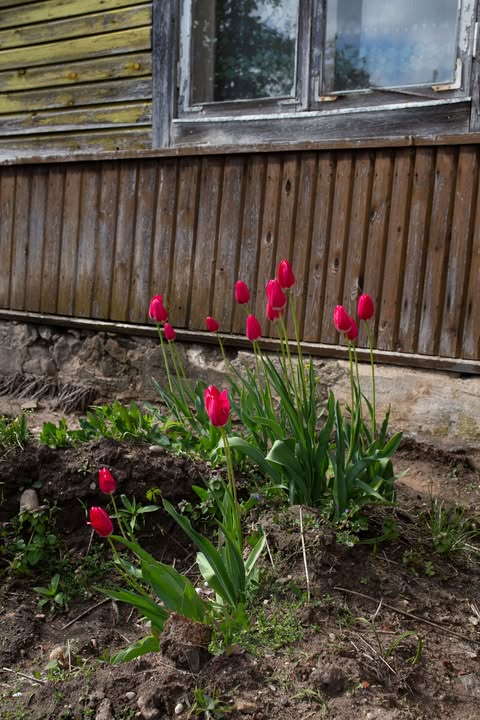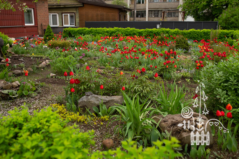 Nijolė Karpavičienė: “šias kaimynų tulpes matau jau 30 metų ir žinau kad jos augo čia ir prieš tai. Niekas jų neiškasinėja, vėlyvos, be juodo viduriuko, nežymus raudonas žiedlapių apvadas.“