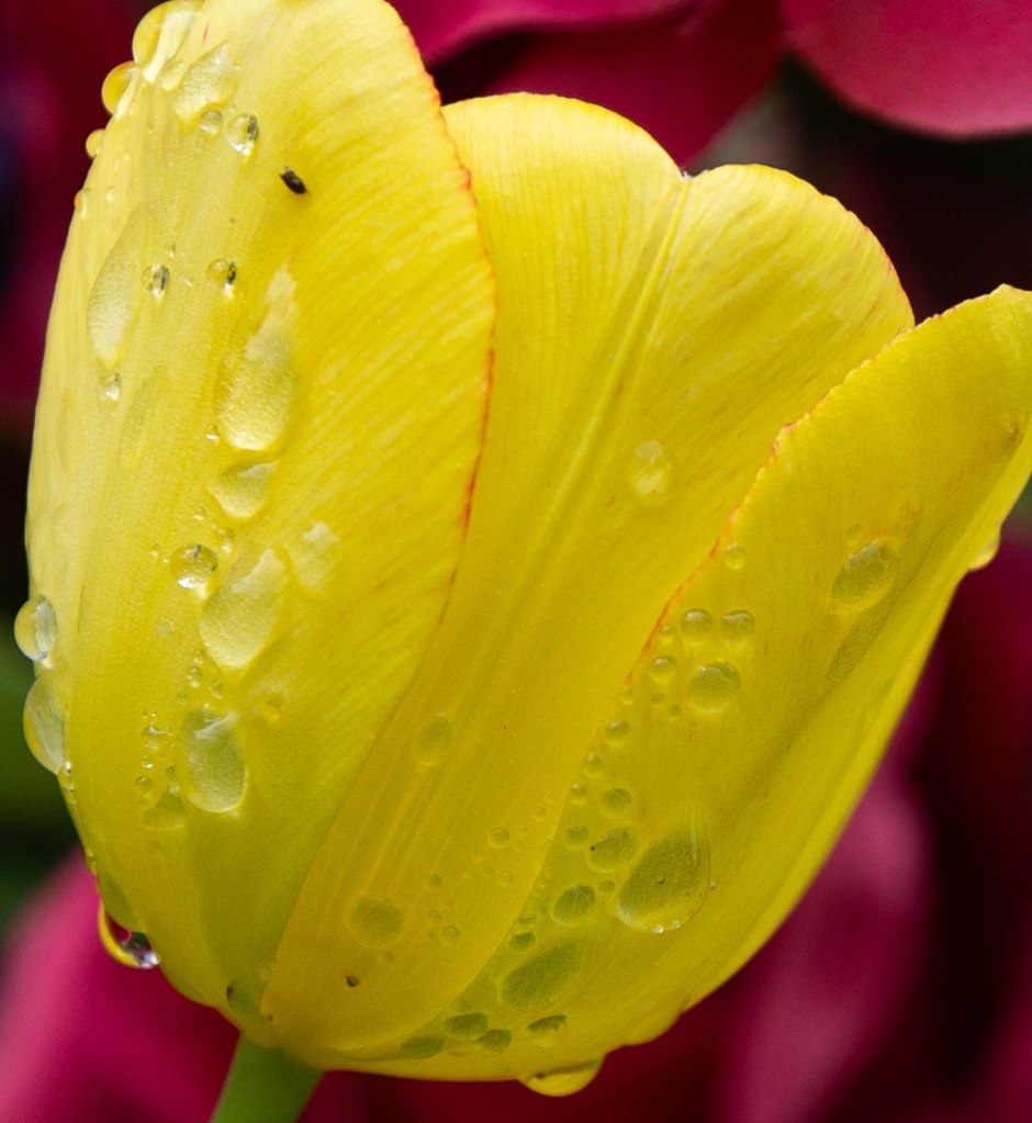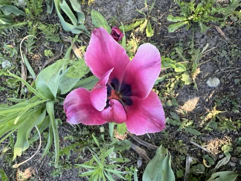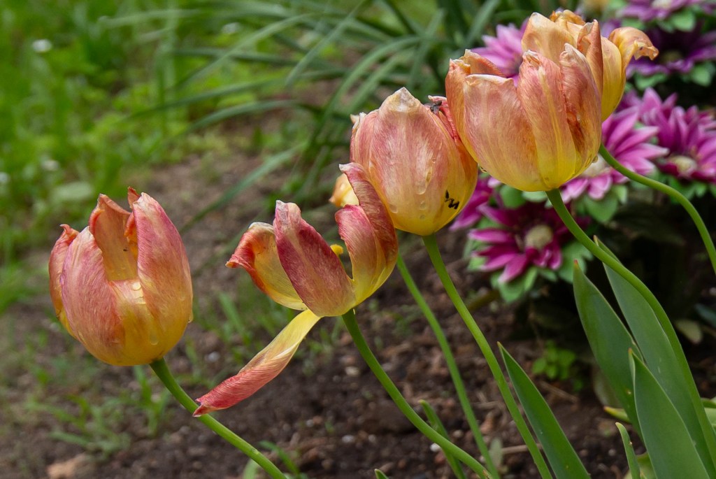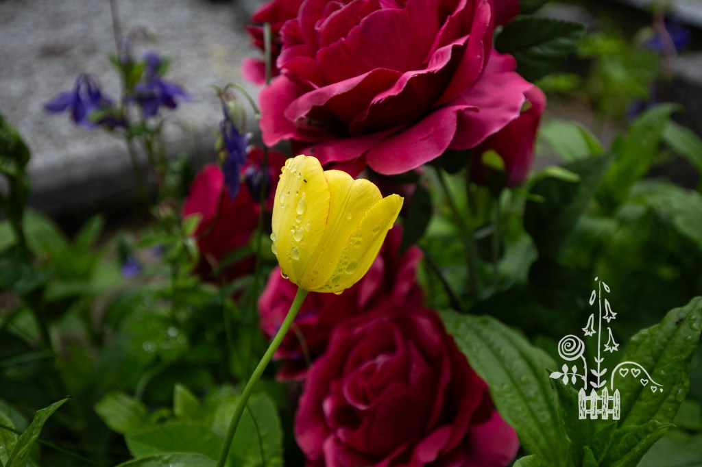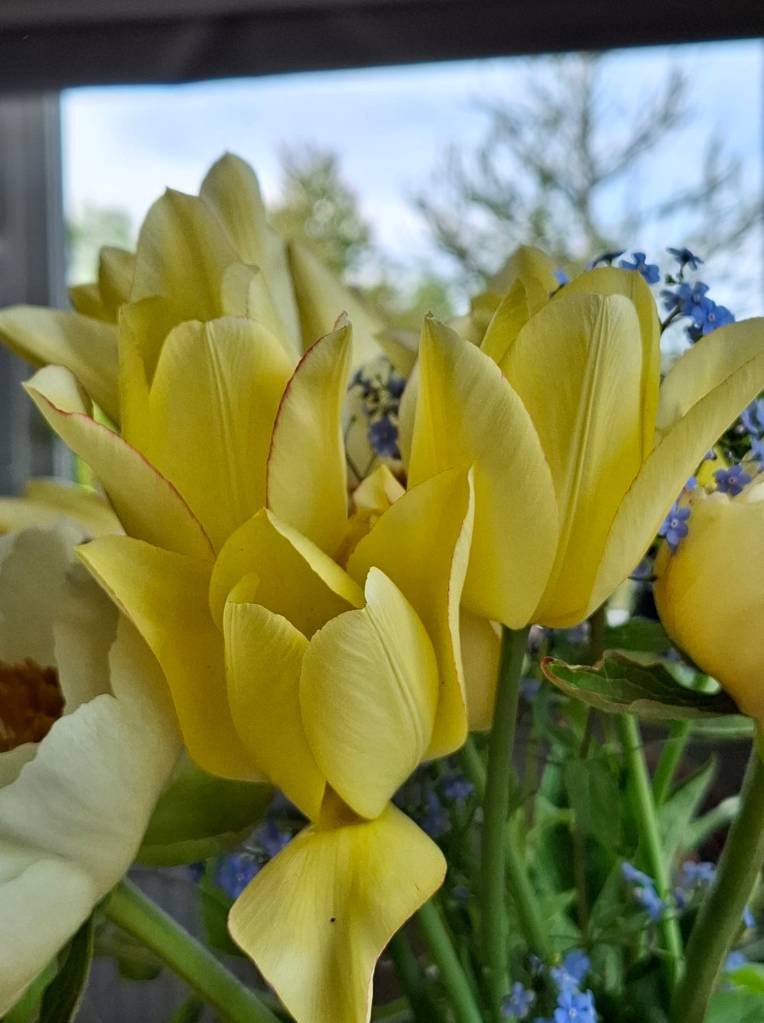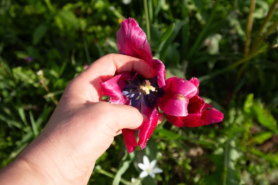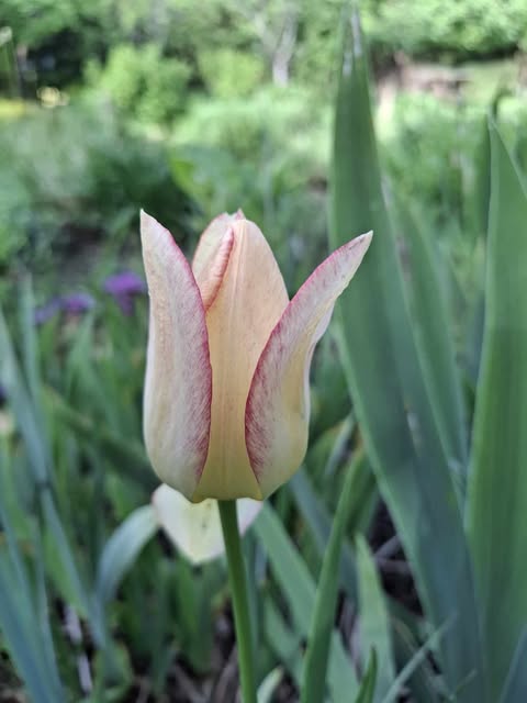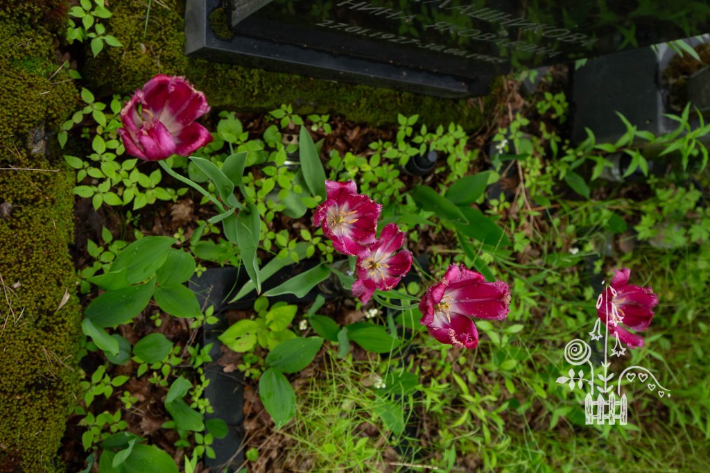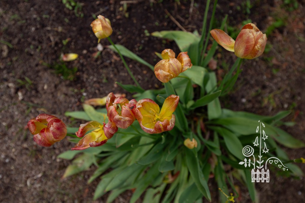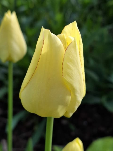Nijolė Karpavičienė: “šias kaimynų tulpes matau jau 30 metų ir žinau kad jos augo čia ir prieš tai. Niekas jų neiškasinėja, vėlyvos, be juodo viduriuko, nežymus raudonas žiedlapių apvadas.“