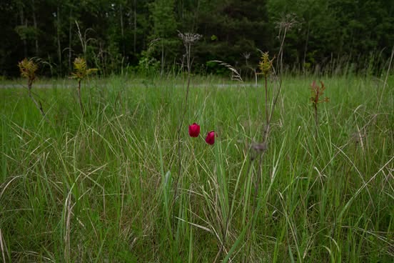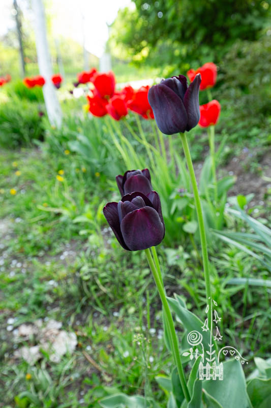 Tamsiai raudonos mistinės tulpės. Žinomos tik iš pasakojimų. Ieškomos. Neaukštos, nedideliais žiedais, labai kvepiančios. Pasakojimai: “augo ir geltonos tulpės, tai už tas buvo perpus mažesnės”. Visi akcentuoja, kad tos tulpės stipriai kvepėjo: “dabar tokių nėra”, “augo ir kitokios, bet jos nekvepėjo”.