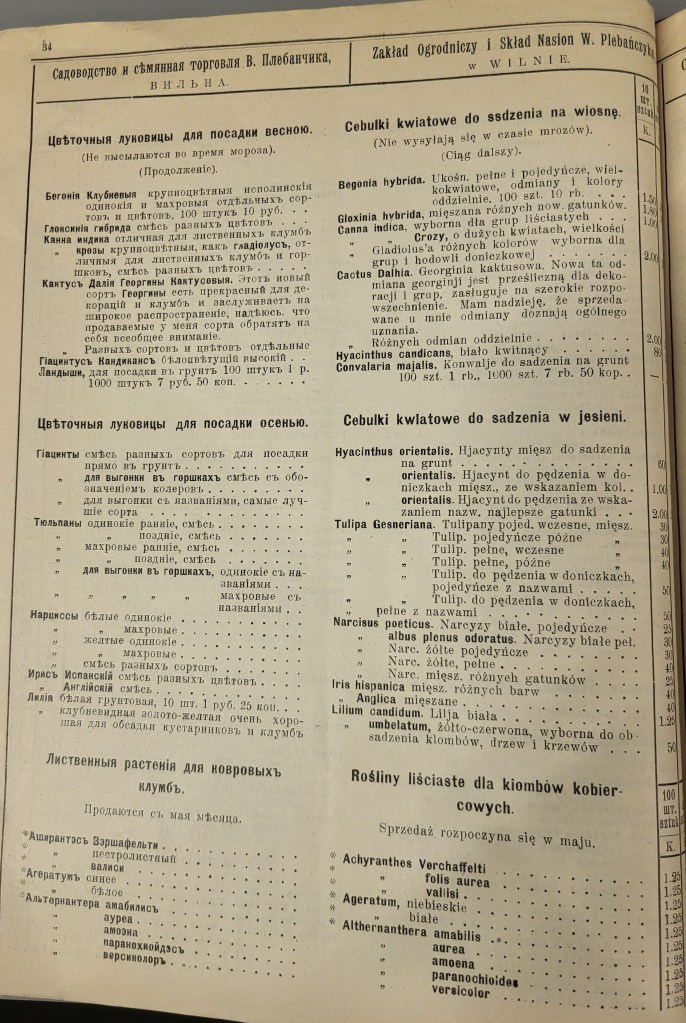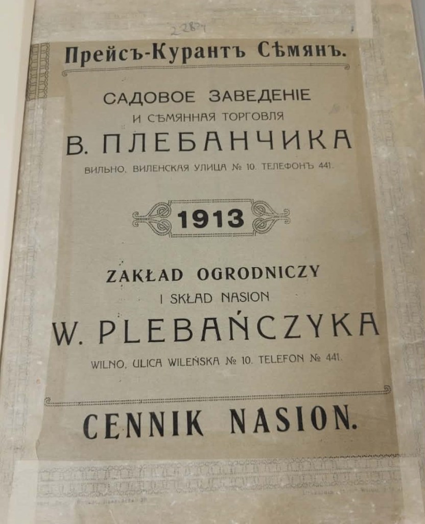 1910 m. Vilniuje, Didžiojoje gatvėje veikusios sodininkystės draugijos parduotuvės katalogas.