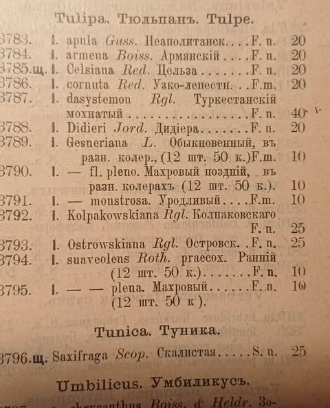 Įdomu: senuose kataloguose buvo vardinamos ir pilnavidurės girinės tulpės. J. Strumilos 1822 m. kataloge: